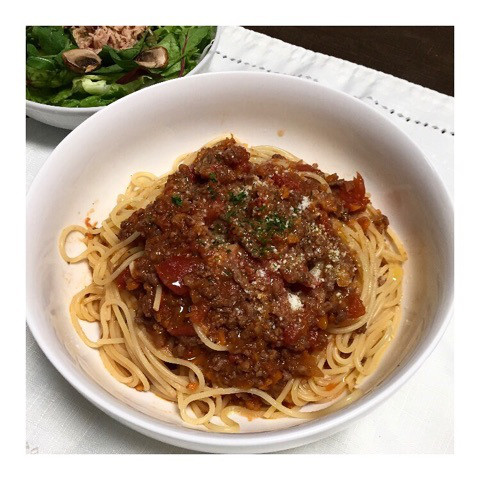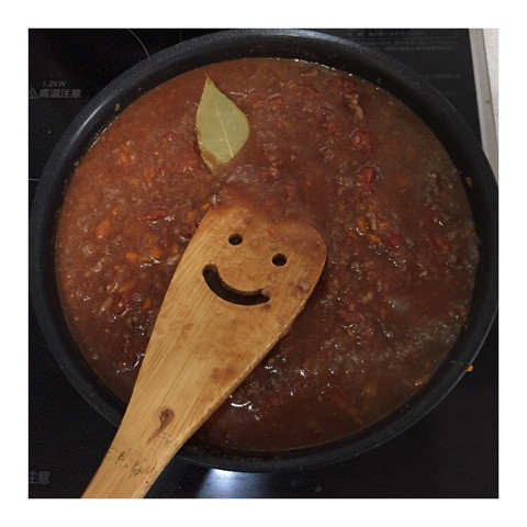たっぷりの赤ワインシャンパンワインを使ったミートソースを作りましたウインク